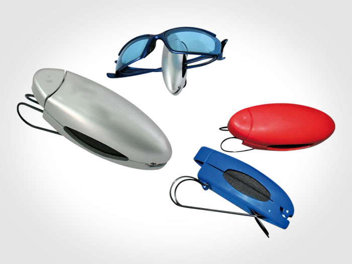 Porta lentes de plástico con clip.