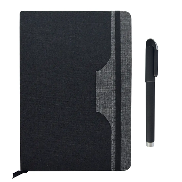LIBRETA A5, CON 80 HOJAS RAYADAS , COLOR NEGRO CON GRIS (INCLUYE LIGA, SEPARADOR Y HOOP PARA PONER EL LAPICERO) MEDIDA: 21 X 14.3 CM,  LAPICERO  COLOR NEGRO ACABADO TIPO GAMUZADO, TINTA DE COLOR NEGRO. (EL LAPICERO SE ENTREGA SEPARADO DE LA LIBRETA)