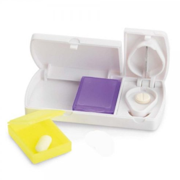 Pastillero con cortador de dos compartimientos